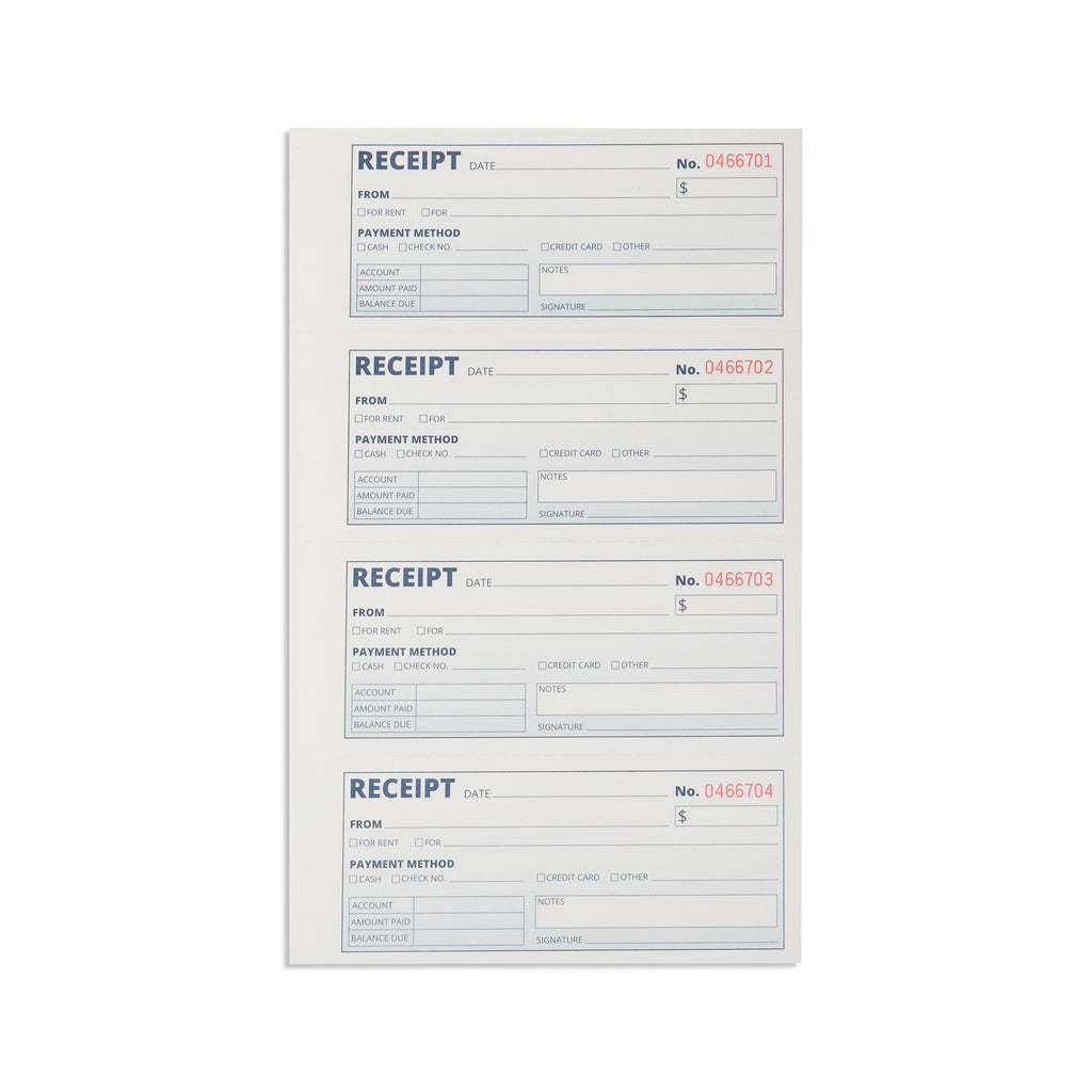- Tape bound duplicate receipt book features a top copy and 2 carbonless copies